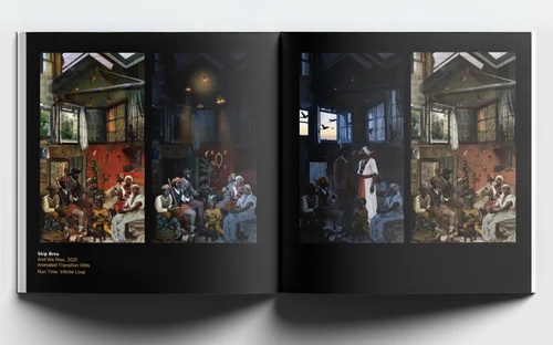 represents a pivotal moment in the ongoing dialogue between the worlds of traditional painting and digital media, especially within the arc of my work. This body of work reflects the beginning of a full merge between these two realms, exploring how both historical and contemporary visual practices can intersect to create new narratives. Through my canvas works and painted animations, I examine the ways in which cognitive responses to image perception and collage operate in both physical and digital spaces.